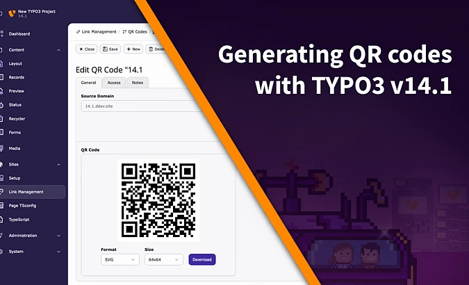 The second sprint release of the TYPO3 v14 series comes with an awesome frontend theme out-of-the-box, further user interface optimization in the backend, a new module to generate QR codes, plus a range of updates and improvements.