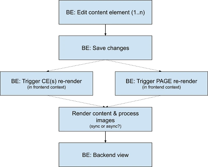 After exploring how other products deal with image processing and after several discussions, we got a feel for what could work well or what things to avoid. Armed with this knowledge, we began to outline a potential solution for asynchronous image processing in TYPO3's frontend.