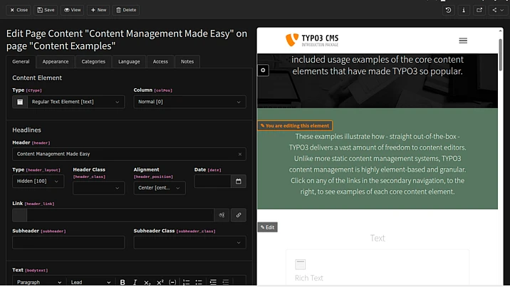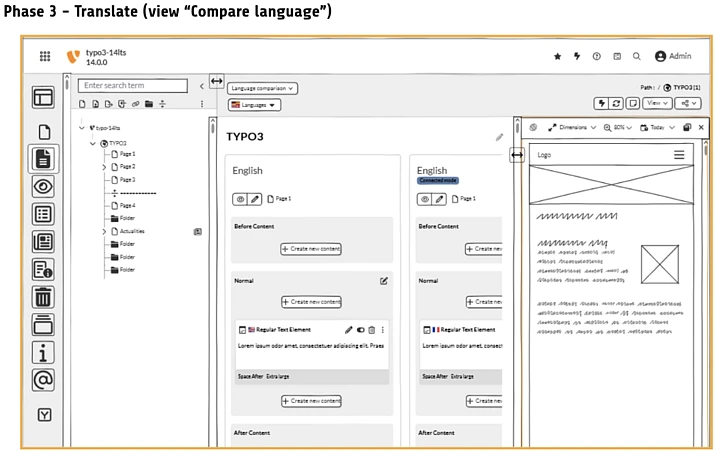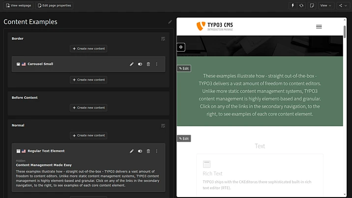 The idea of side-by-side content has always been haunting me. I knew other CMS platforms had this type of view, and it was frustrating to see TYPO3 missing it. For a long time, I thought: “It would be great to have something like this in TYPO3.”
