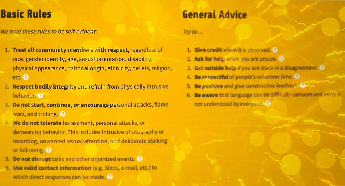 - Other events that explicitly declare that the Code of Conduct applies.
