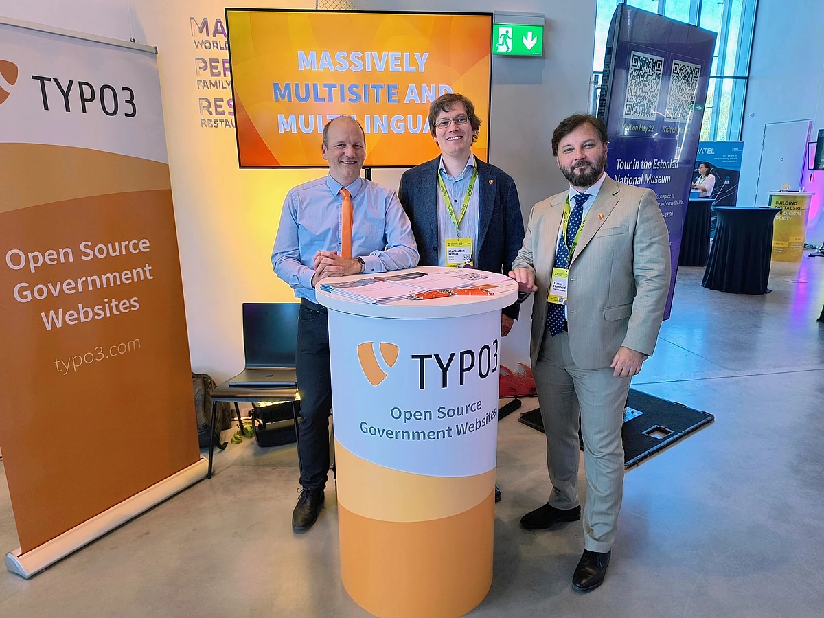 Daniel Homorodean, Mathias Bolt Lesniak, and Stefan Busemann attended the 10th eGovernance Conference, in Tartu, Estonia, 28–29 May 2024, for the TYPO3 Association, as a part of the Meet TYPO3 initiative. Daniel leads the TYPO3 Community Expansion Committee, Mathias is the TYPO3 project ambassador, and Stefan is treasurer in the TYPO3 Association board. See upcoming Meet TYPO3 events.