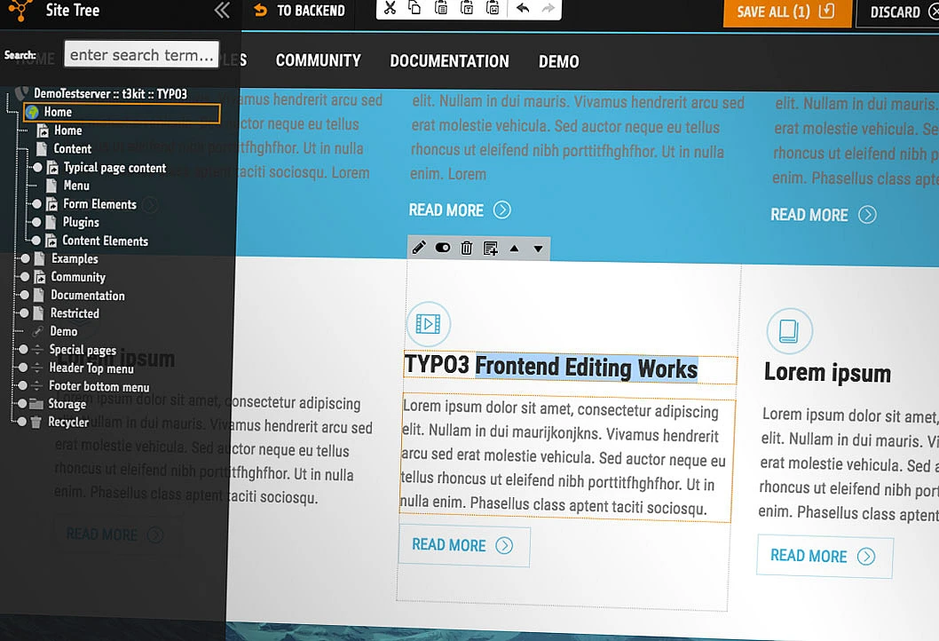 We will revisit Resource handling (Phase 4), as we would like a more integrated and straight-forward user experience than the current modal pop-up. An improved Pagetree (Phase 7) was introduced in version 1.2 of the Frontend Editor, 11th September, 2017. It uses the same D3 component as the upcoming TYPO3 Backend Page Tree.