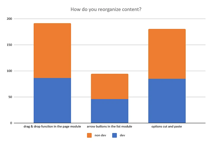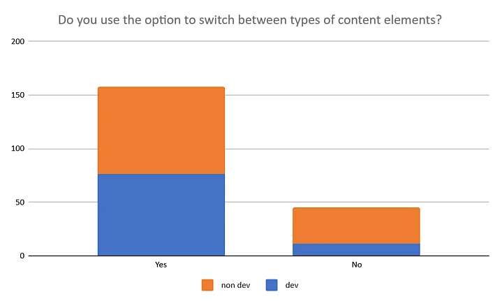 We were quite surprised by some answers, because we thought that some features were almost not used anymore, such as switching the type of a content, or the use of the list module for some actions that can be done today in simpler ways.