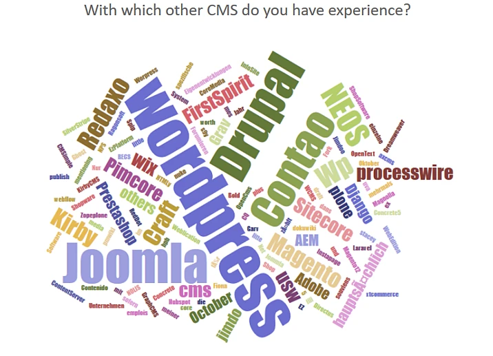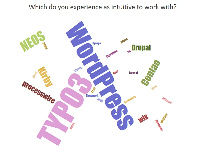 Not surprisingly, we find the best known CMS on the market among the tools they use. And among those they find intuitive to use, TYPO3 and WordPress are the most mentioned.
