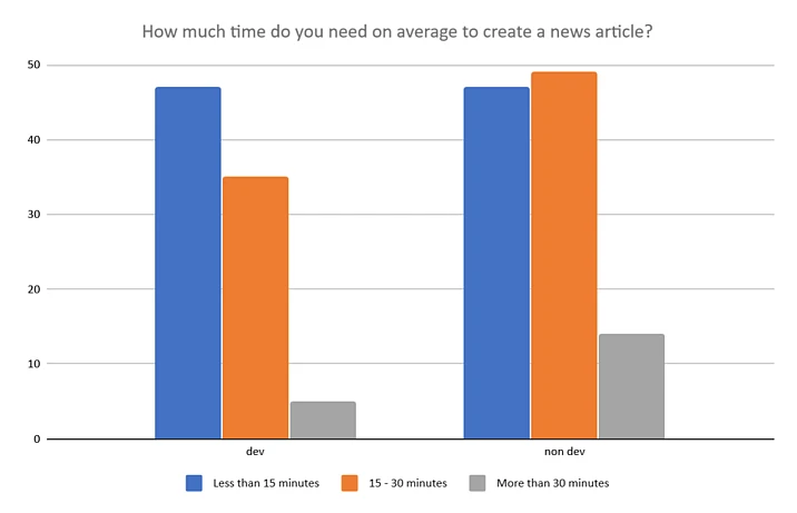 As the answers are based on self-reporting and not user testing, we can say that non-technical profiles perceive that they need more time to perform the same tasks. We speculate the different causes can be among the following: