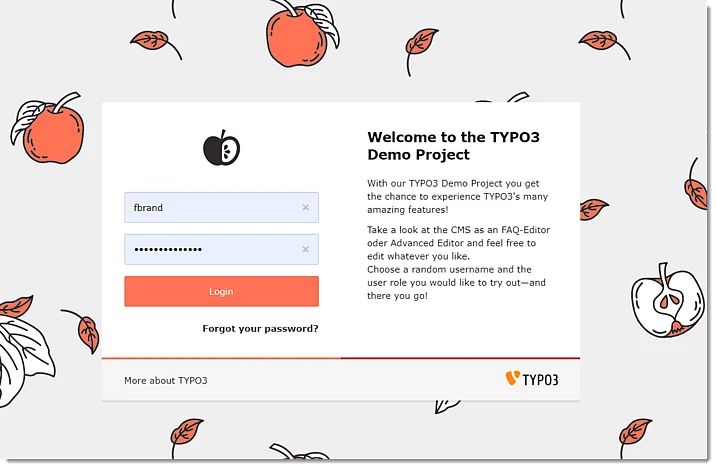 - A frontend login to show how you can restrict your content to certain frontend users (an impressive out-of-the-box feature of TYPO3)