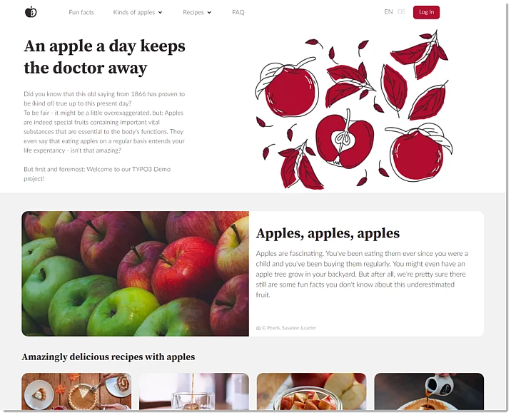 We usually don't have a demo-site at hand, showing standard defaults and popular features. The next thought might be to show an existing project, but these are hard to demonstrate with all the GDPR hurdles and NDAs standing in the way. The official Introduction Package does a great job of showing some of the powerful features of TYPO3, but the frontend is far from a real-world example of a typical website.
