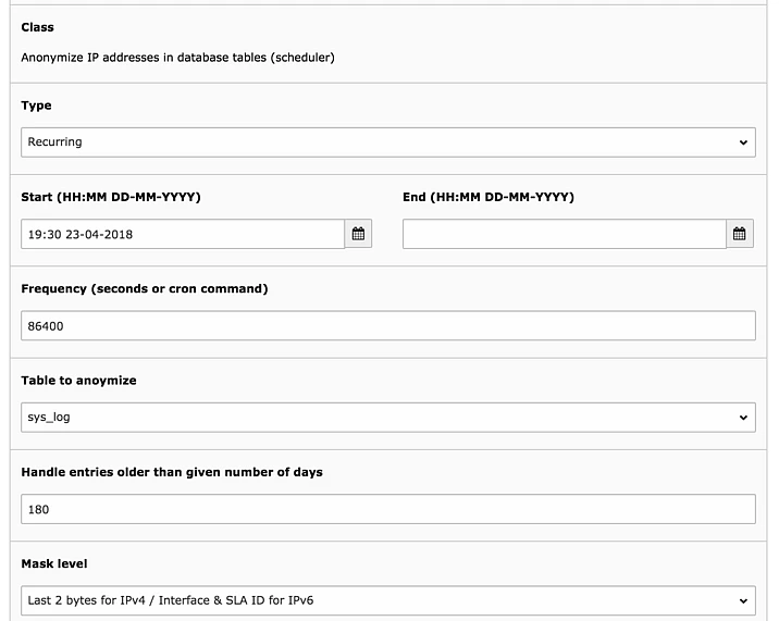 - A recurring task runner can anonymize IP addresses after a given time.