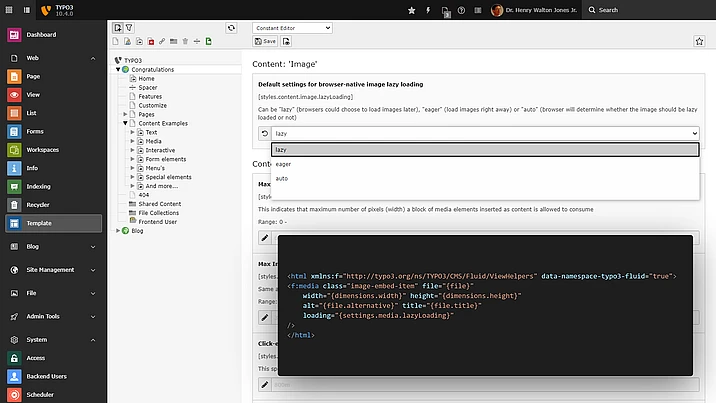 The “loading” attribute for image tags was accepted and published last year as a new HTML standard (see the specification for further technical details). The purpose of this attribute is to instruct browsers if they should load images that are outside the viewport. As browser vendors start adding the support for this feature, TYPO3 v10 LTS already allows integrators and developers to configure/use this functionality.