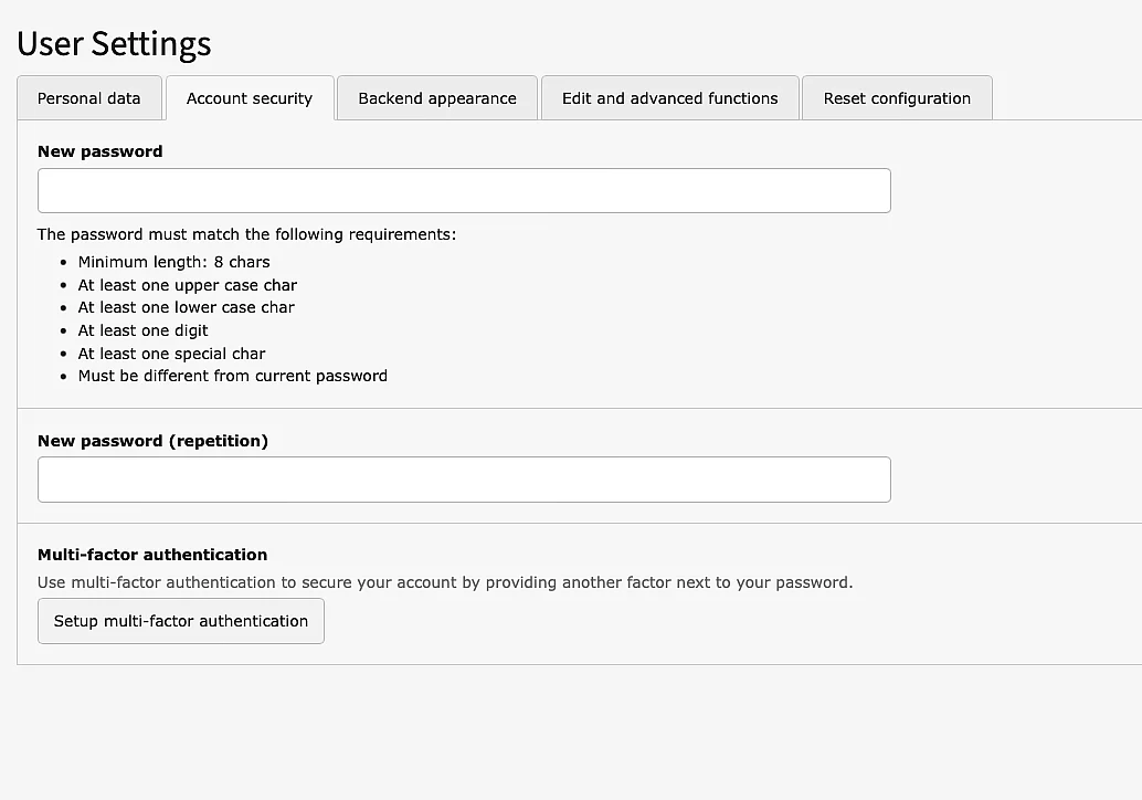 Tasks such as creating forms, adding backend users and managing third-party extensions also take place in the backend.