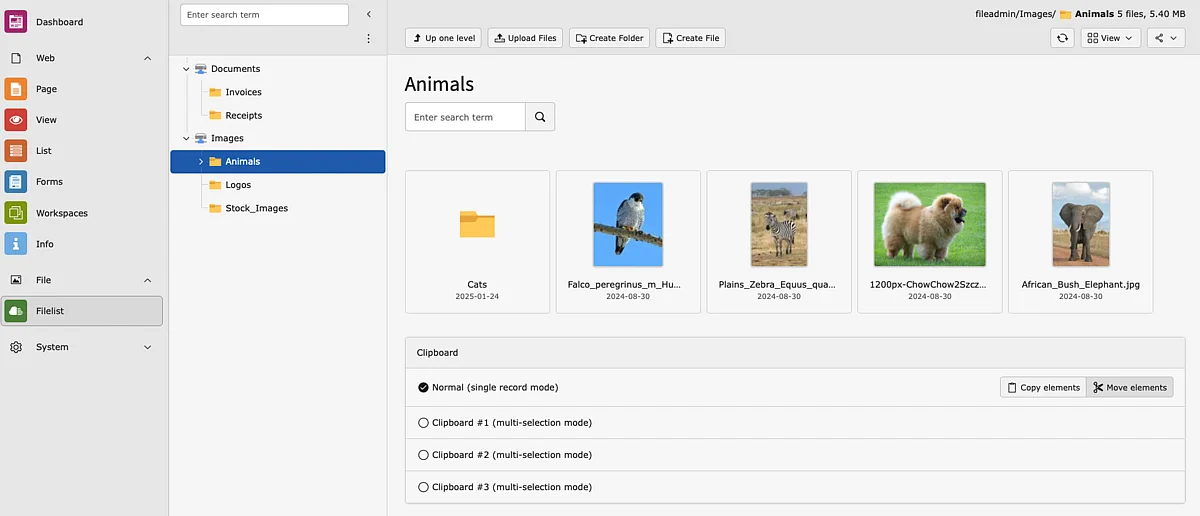 The Filelist module is your hub for organizing assets that includes images, documents, and other files.