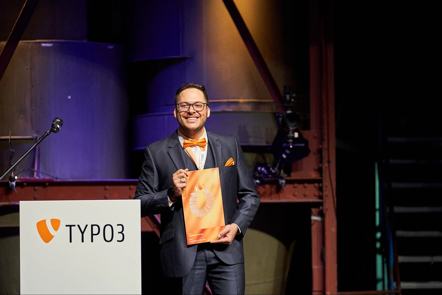 The most touching moment of the night was when Abdulhamid Kwieder received the Personality of the Year Award. A Syrian TYPO3 developer working at Earlybird in Vienna, Austria, Abdulhamid has completed the enormous task of translating the entire TYPO3 Core — more than 70,000 words — into his native Arabic.