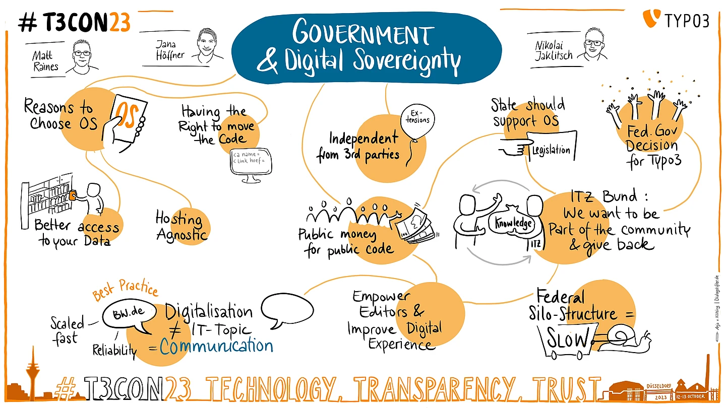 A highlight of T3CON23 was the panel discussion on Government and Digital Sovereignty. It explored the practical applications and challenges of maintaining digital sovereignty in the public sector and was described as “one of the best talks” of the conference.
