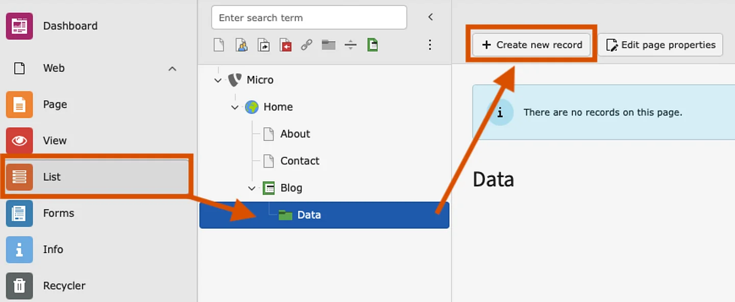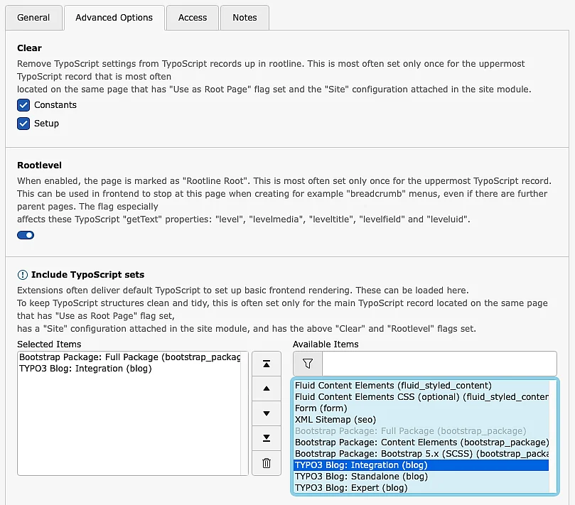 In this example we will configure the extension manually, meaning we will need to create folders for items such as blog posts, categories, tags, etc manually and then tell TYPO3 where they are in the page tree using TypoScript.