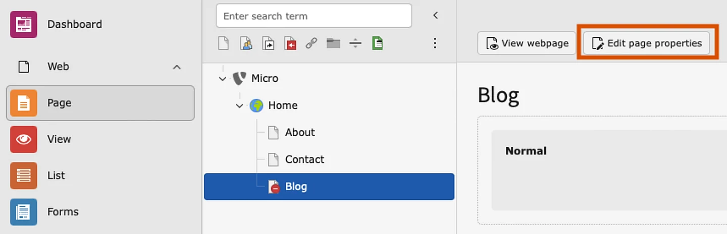 Then from the General Tab, change the Page type to Blog Page. Notice the red icon on the new blog page? That means the page is disabled, to enable it - right click on it and select Enable.