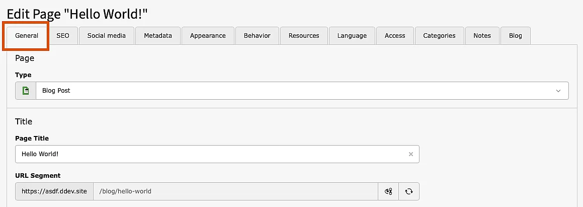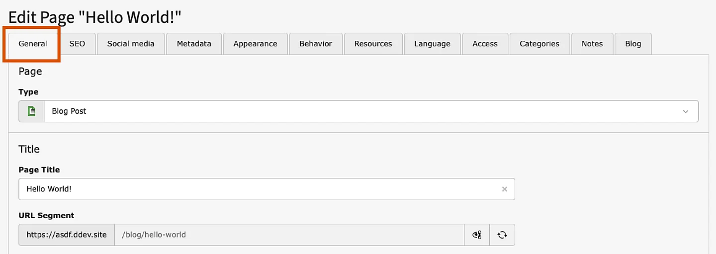 From the General Tab we can change the blog posts title, if you do change the title don’t forget to reload the URL segment.