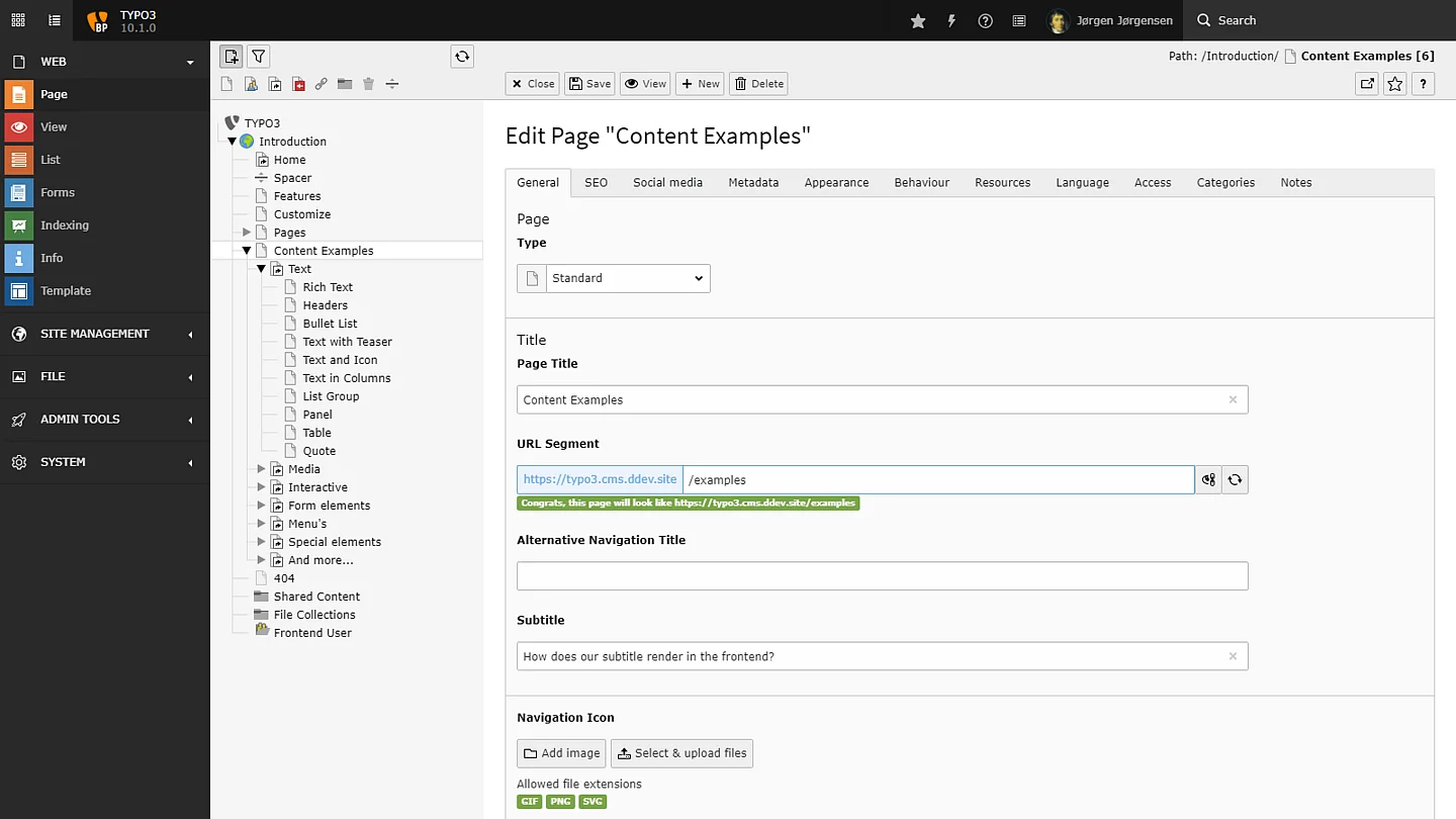 The TYPO3 page tree is a much-loved interface that makes site and content management intuitive. TYPO3 v10 introduces keyboard navigation which is a major accessibility improvement.