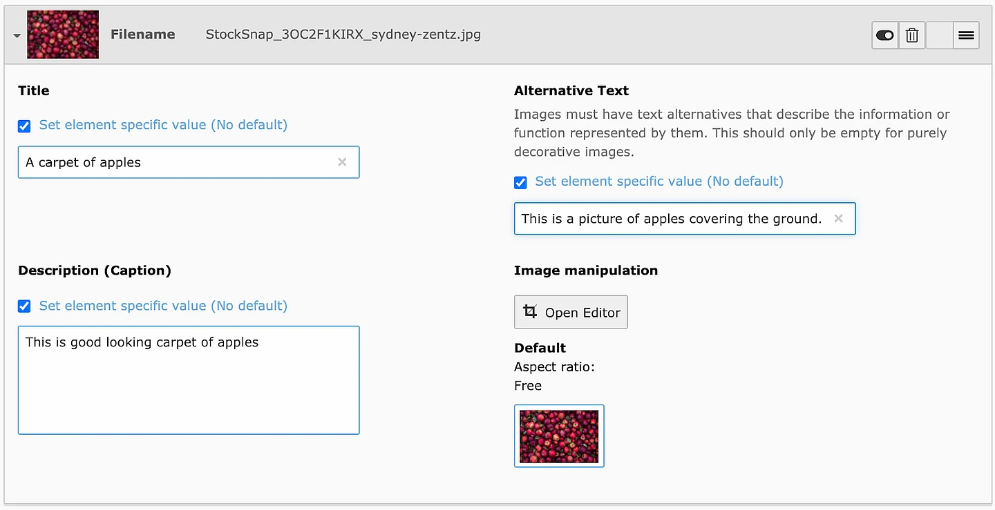 You can also set metadata for certain content elements like images. This tells search engines what kind of images are included on your page. Learn more about setting the metadata for images in our Feature Highlight story on managing and editing images in TYPO3.