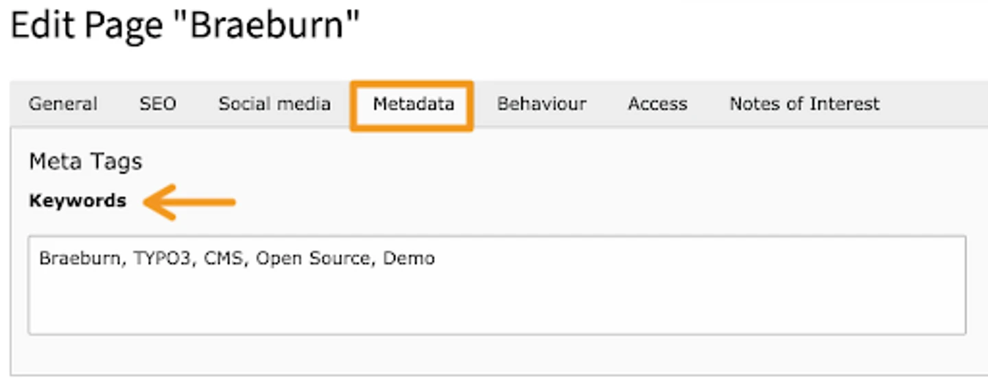Once you enable the TYPO3 Core SEO extension, you can set metadata at a page level. Set a unique title for search engines based on what your website visitors are searching for, along with a description detailing what’s contained by the page.
