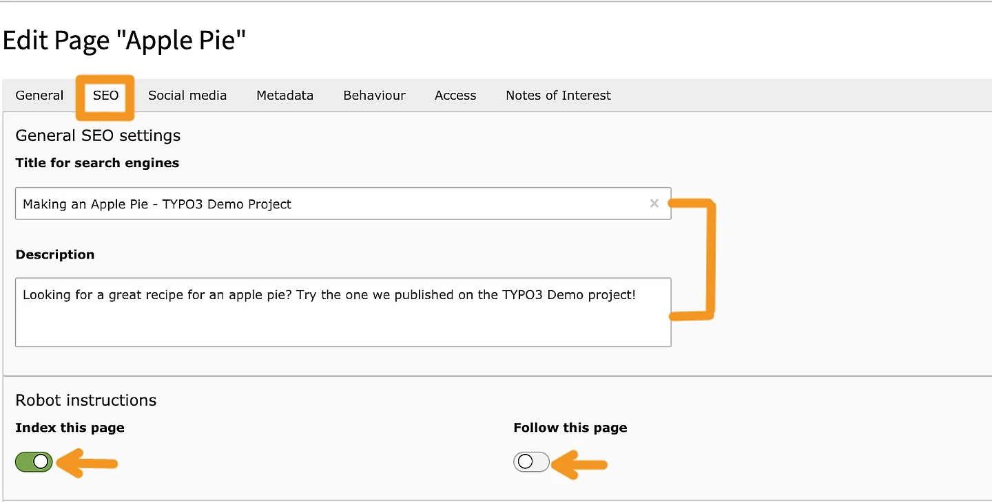 - Follow this page: Turning this on lets search engines know they should follow the links on this page.