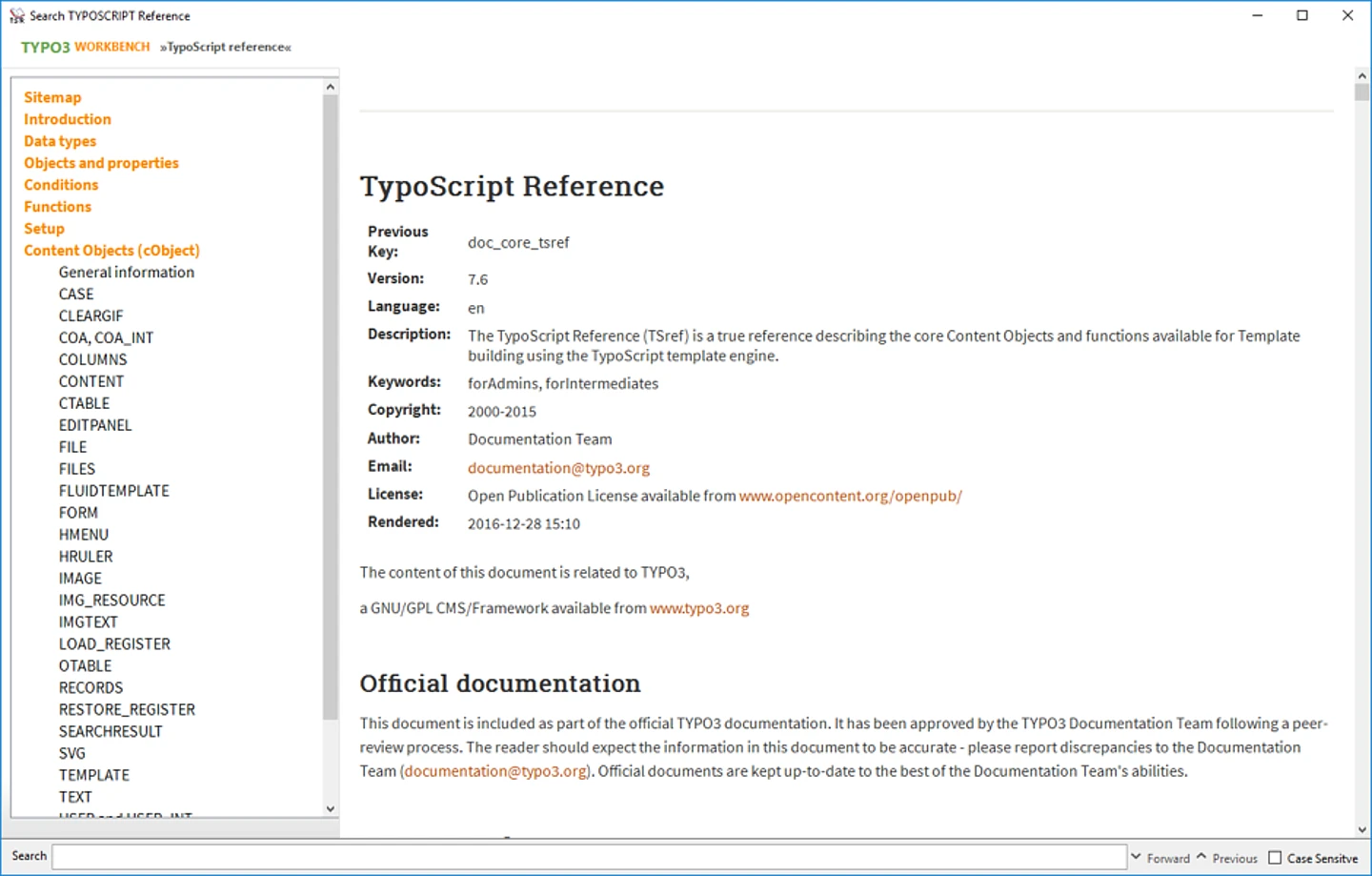 Based of the HTML availability of the important references (TSREF and TSConfig) we added them to TYPO3 Workbench. In the latest version of the TYPO3 Workbench we also added the reference for FLUID and Extbase, since those are available as a single HTML file on docs.typo3.org.