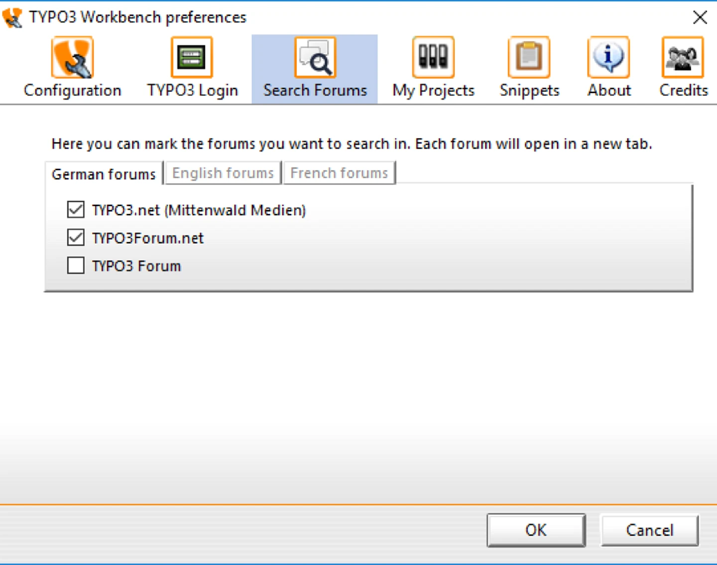 With the forum search in TYPO3 Workbench you can customize in which forums you want to search. By using this function each selected forum will be opened with its results shown in a new browser tab.