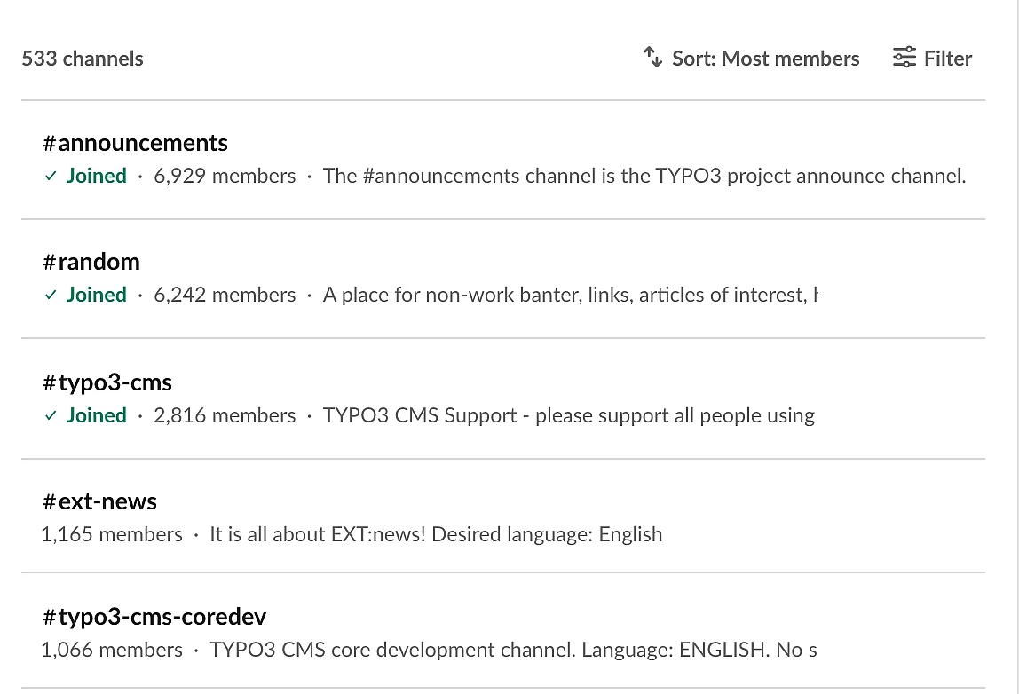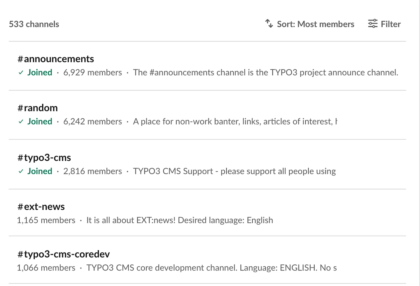 Get your account on TYPO3 Slack. #random has the most members after the default #announcements but you’ll learn a lot browsing the #typo3-cms channel.