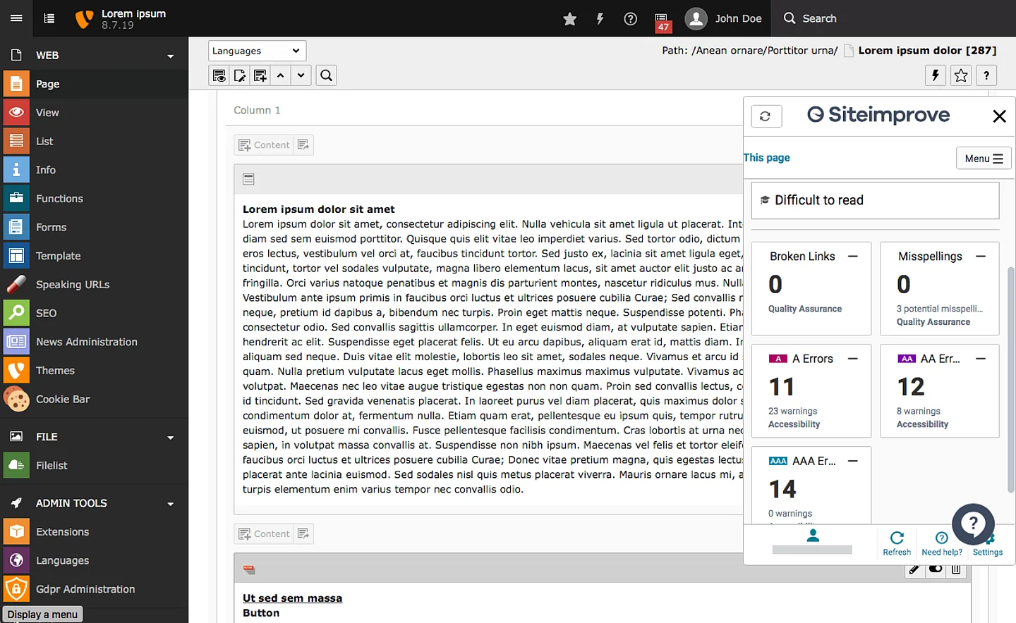 Keeping your site quality-standards high ensures better user experience and discoverability. Pixelant explains how you can evaluate your site with one click using Siteimprove. This service analyses content quality, policies, page visits, SEO impact, etc.