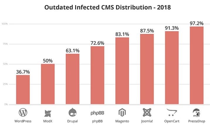 TYPO3 has had a dedicated security team since 2004. Stay informed about all things TYPO3 security—updates, how to report vulnerabilities, security workflows—by visiting the security team page on typo3.org. And as we mentioned in the previous point, TYPO3 is no longer on the Sucuri list of infected platforms as of 2018.