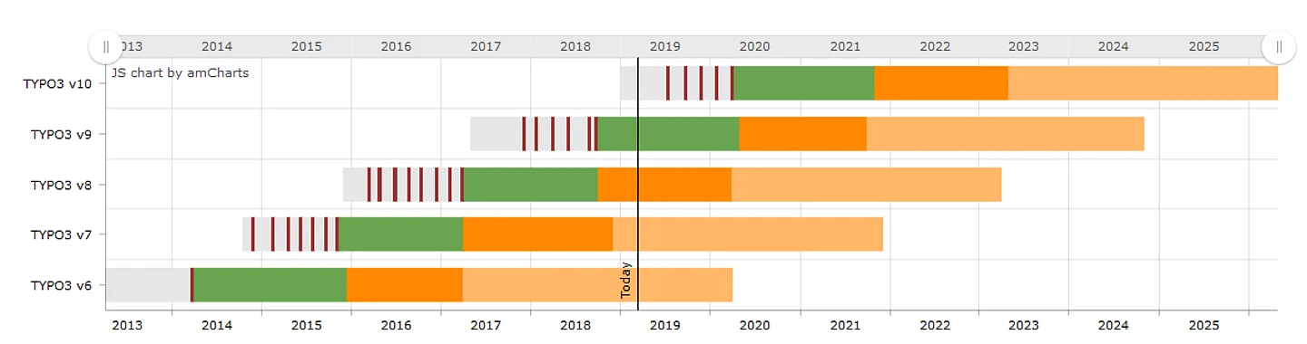 TYPO3 offers a predictable release roadmap, a clear support model, and easy well-documented upgrades between major versions.