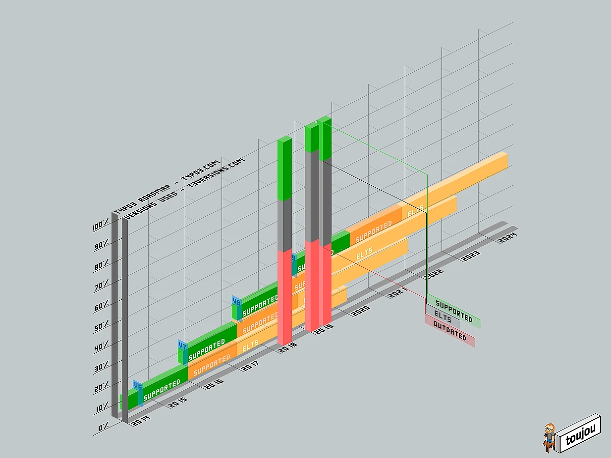 As the graphic above shows, most TYPO3 websites are outdated or close to their end-of-life cycle because support for v6 is running out. There are multiple reasons for this:
