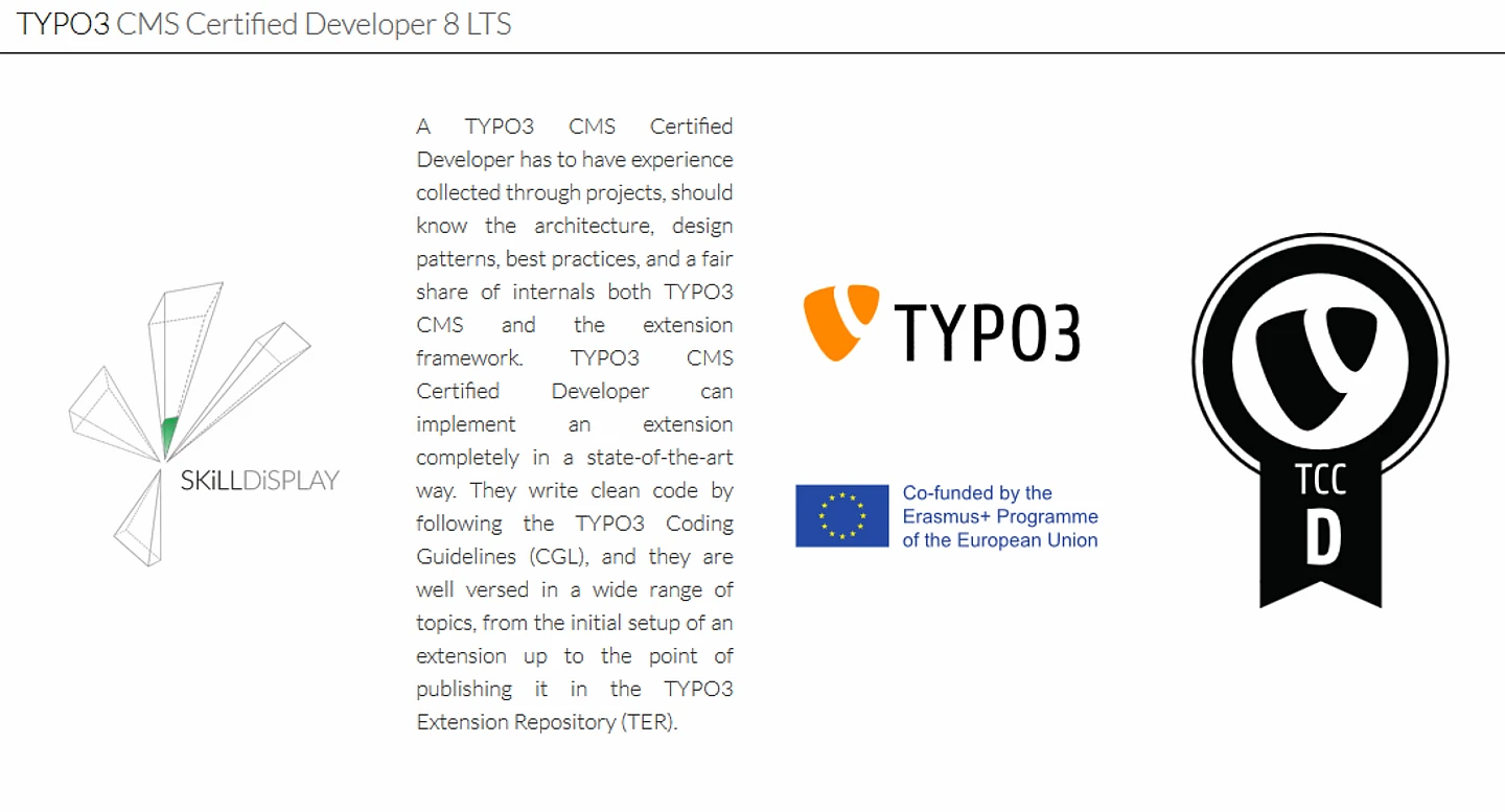After you have achieved an official TYPO3 certificate, which can be TYPO3 CMS Certified Editor, TYPO3 CMS Certified Integrator or TYPO3 CMS Certified Developer, you can add the certification-status to your SkillDisplay profile and receive a reward. If you need to take the exam before, the SkillDisplay platform helps you to achieve this goal. You can learn, track and verify your skills, so you can concentrate on learning instead of having to manage what you have to do next or what you have already learned. If you have not registered yet, you can do so here. And if you already are - it’s time to learn something new, don’t you think?