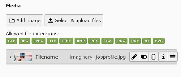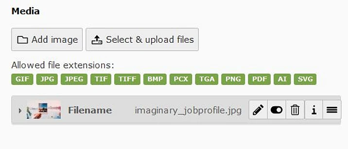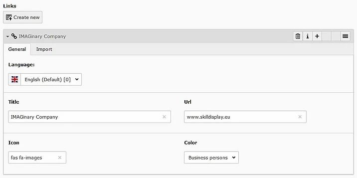 On the SkillDisplay platform or a SkillDisplay as a Service instance, a new record “SkillSet” needs to be created. Afterwards skills can be selected, links to your own website can be set, and a job description as well as an image (1600x900) can be added.