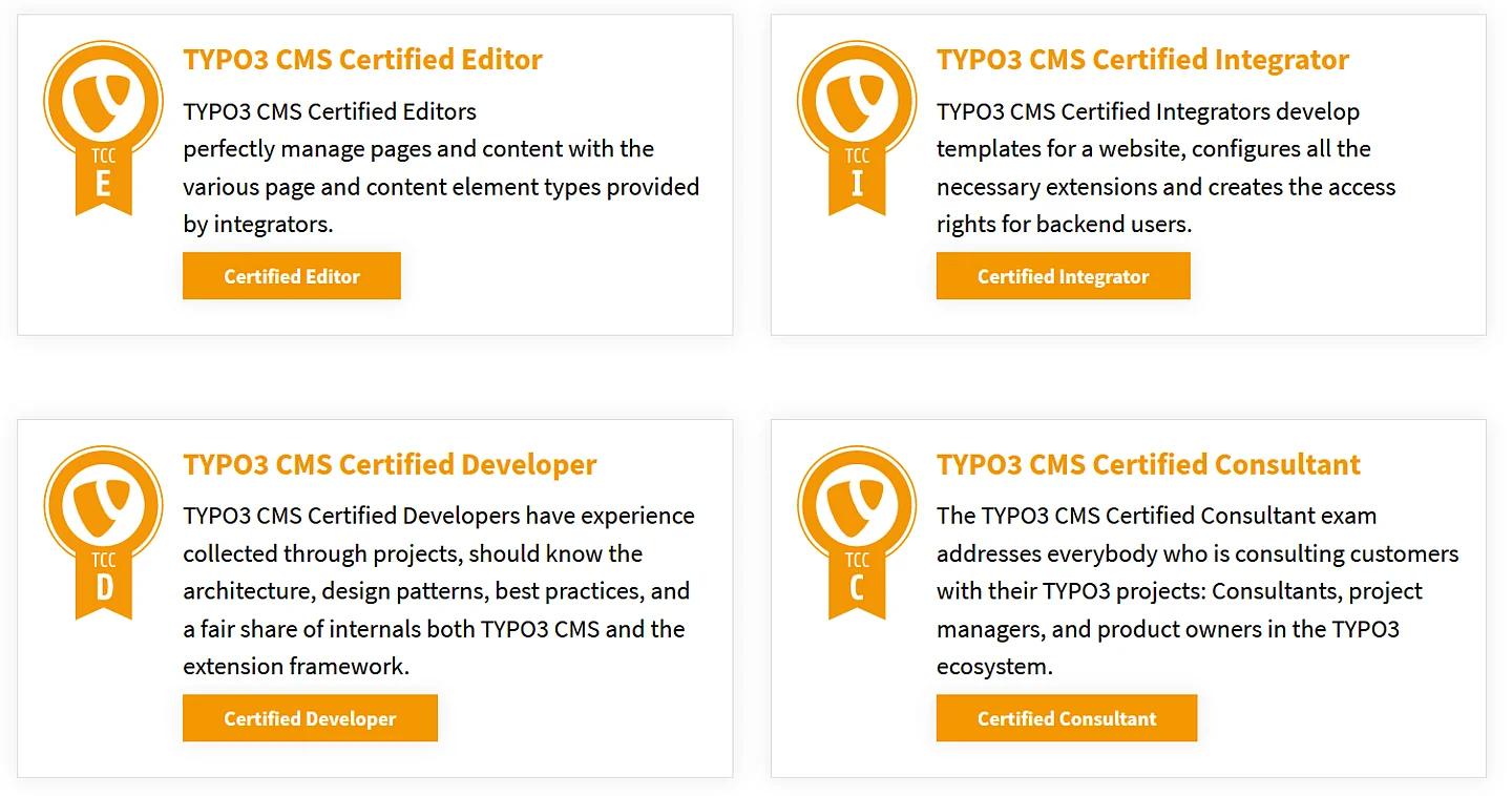- TYPO3 CMS Certified Editor 9 LTS to access skills on a beginner level.