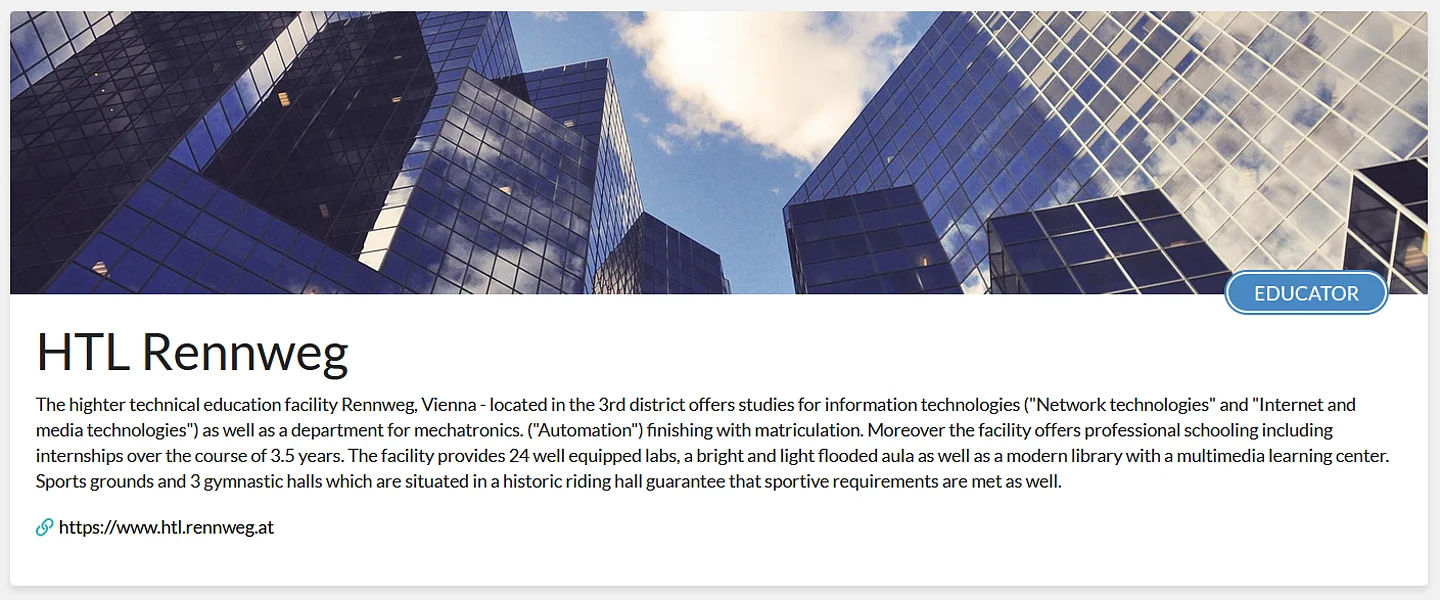 The technical high school based in Vienna have created their own skills for topics for which none are available yet. As one of their specialisation areas is media technology and more specifically web technologies, a SkillSet for this area was created that matches the syllabus of the lectures. There is also a strong project management focus, teaching students both waterfall and Scrum along with applying the knowledge in projects. The best part about it: they are making their skills available for you and everyone. To get more information about HTL Rennweg and to get an overview about their SkillSets, visit their public profile. This is now also possible without being a user of the SkillDisplay platform. Just use the “Continue without registration” button.