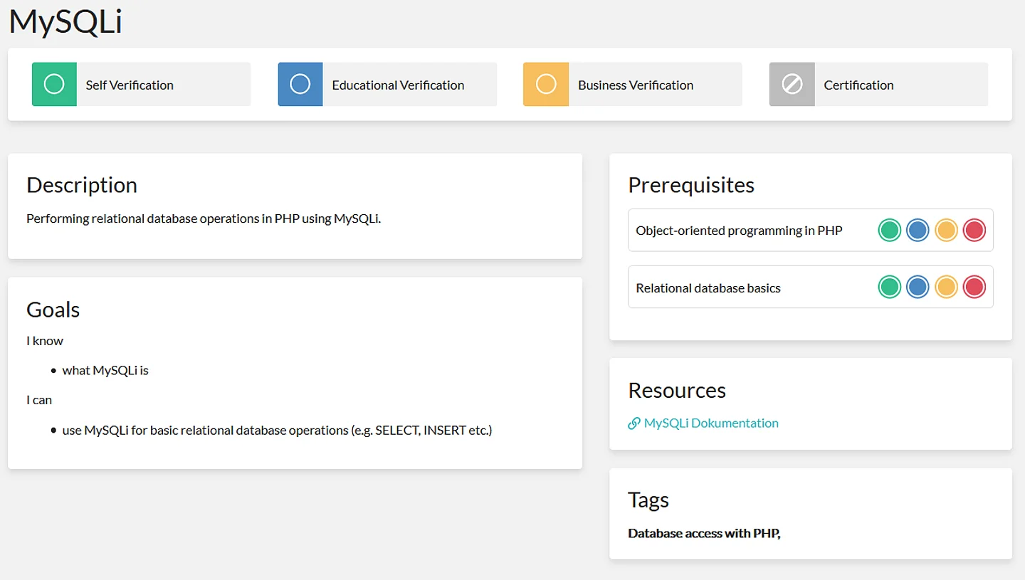 Note for potential certifiers: As the skills are created by an educational institution, we are currently looking for associations who consider themselves specialists of certain skills. Read on to get more information about the topics and how to become the official certifier of certain skills.