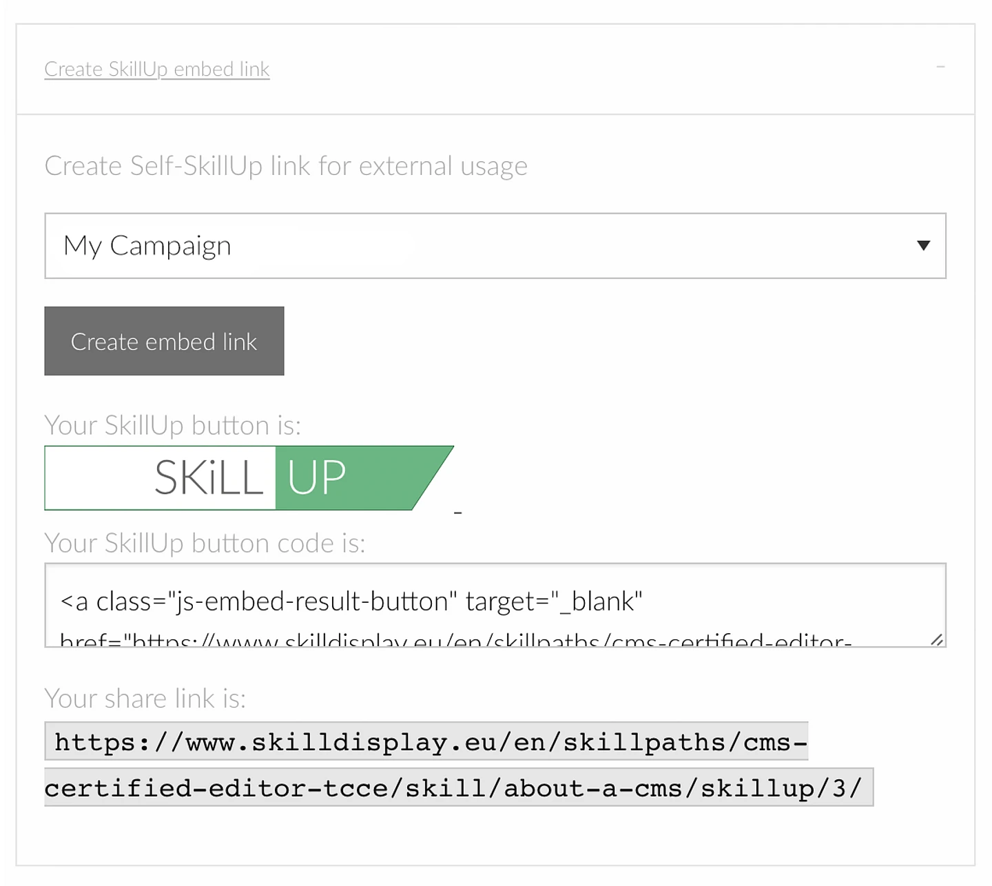 The Self-SkillUp of the user will be linked to you via the help of a so called "campaign"