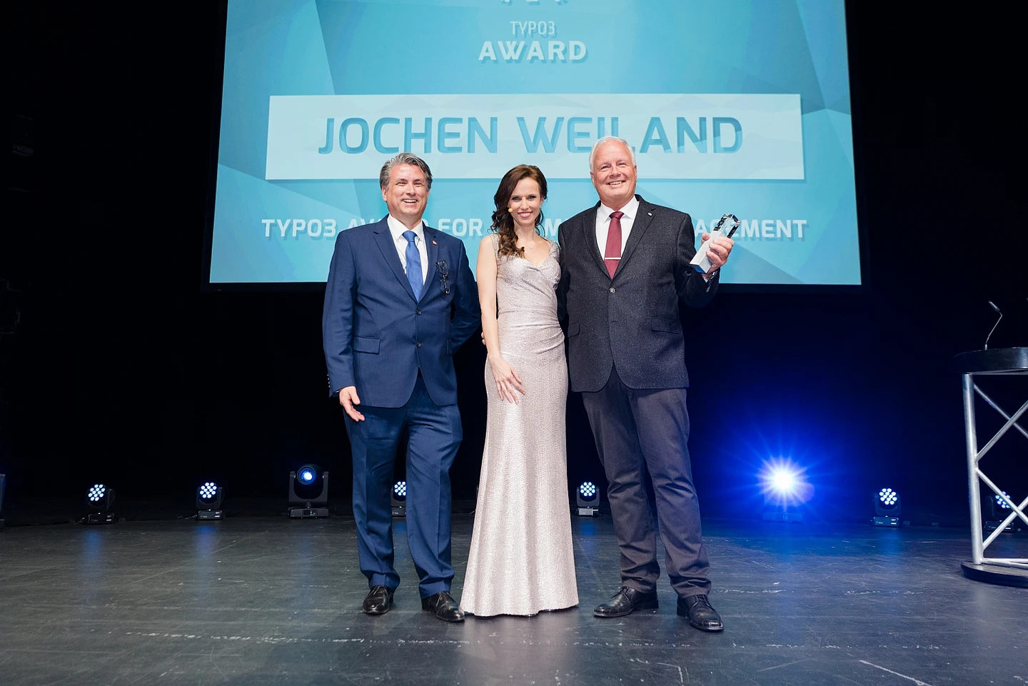 Community pillar Jochen Weiland received the TYPO3 Association President’s Award for Community Contribution to massive celebration from the audience for his many years of tireless, generous work for the community. From all of us, thank you Jochen, for giving back and paying forward all these years.