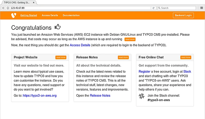 If you are interested to explore the options, e.g. check out the latest TYPO3 v9 release, jump online and go to typo3-on-aws.org. This is the perfect starting point to launch a TYPO3 instance on AWS.