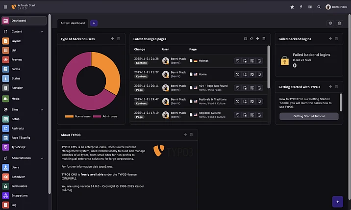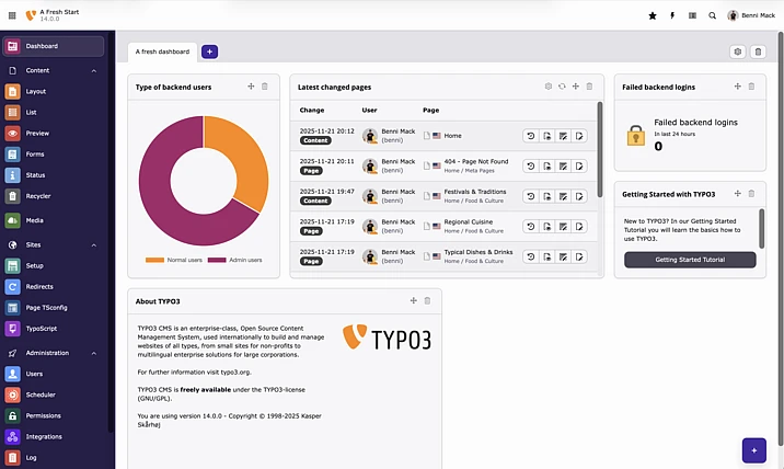 The first sprint release of the TYPO3 v14 series represents a major milestone and is now available for you to download. It marks the beginning of a new era for the open-source content management system TYPO3. The backend received several strategically designed changes which lay the foundation for future innovations—and we’re just getting started.