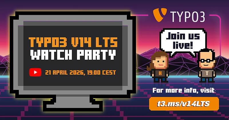 - Program: Presentation of TYPO3 v14, feature highlights, and plenty of networking.