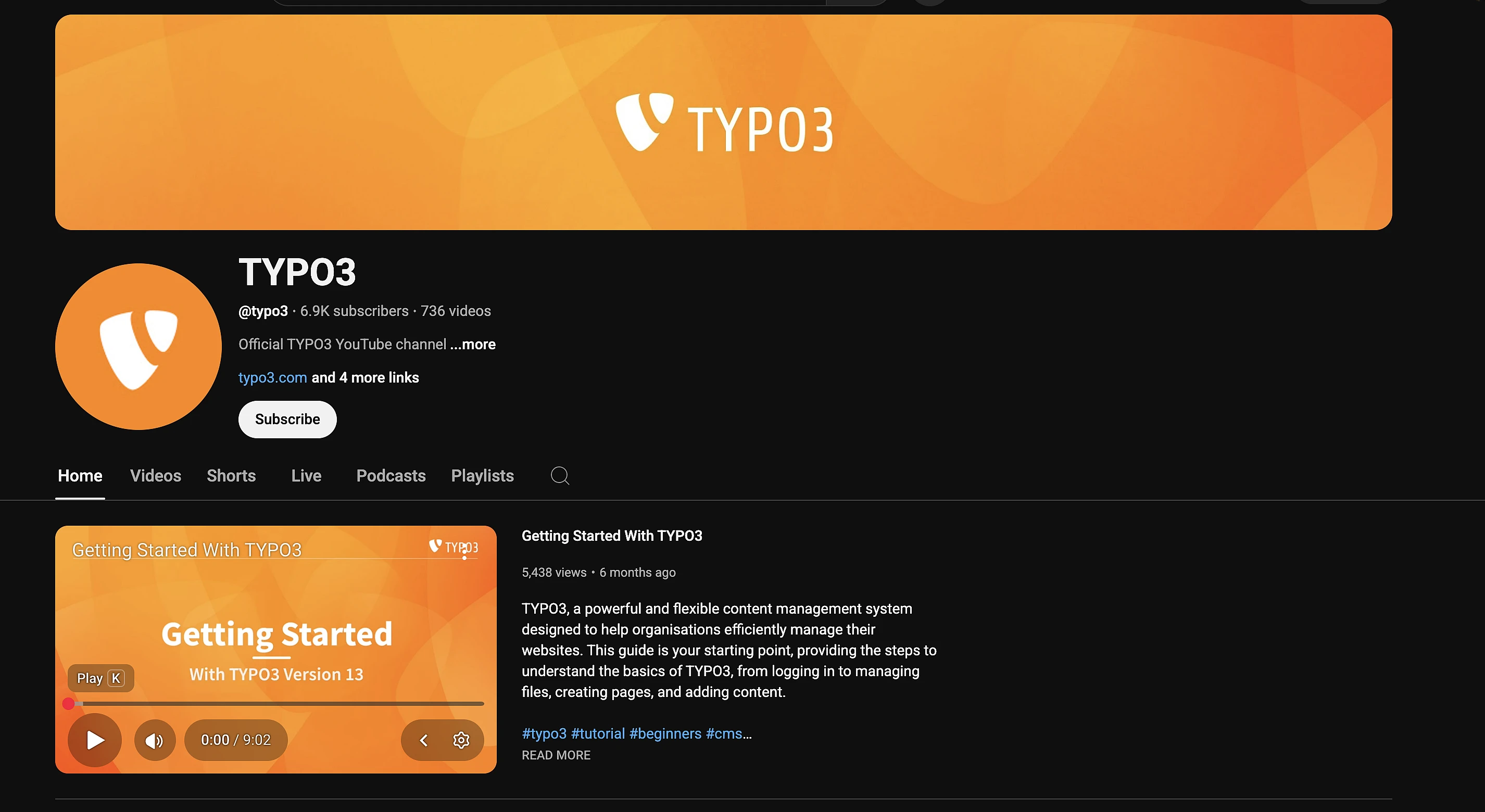 Watch our TYPO3 YouTube playlist for editors: 8 tutorials from creating pages to managing content. Perfect for beginners, updated for v13.