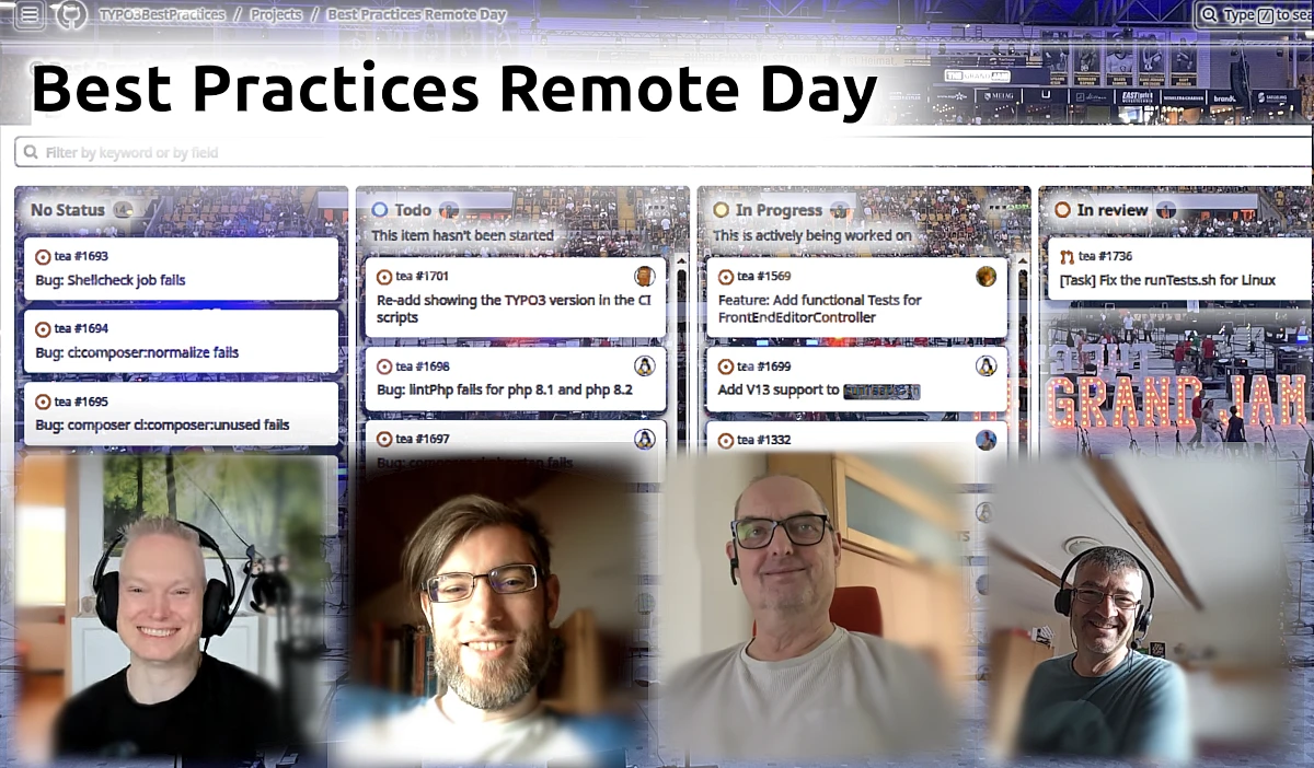 The first Monday of the month means one thing for the TYPO3 Best Practices Team: it’s remote code sprint time again! On 7 July 2025, a few of us came together online to collaborate, share knowledge, and make real progress.