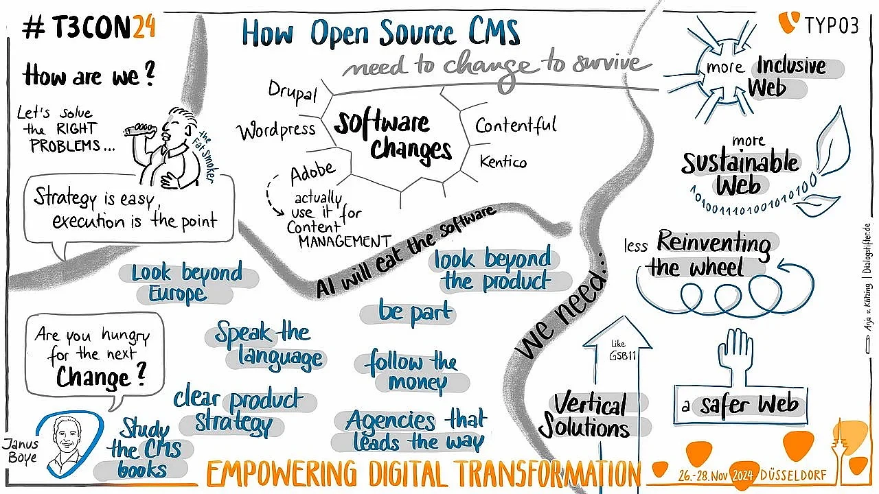 In his talk at T3CON24, Janus Boye shared the challenges open source content management systems (CMS) face in the present and future- and how we can adapt.